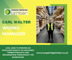 Carl Walter is the Works Manager here at Tonge Bridge Timber. Carl has 30 years of experience within the timber industry. Carl looks after the organisation across the factory and keeps day‑to‑day production running smoothly and also will oversee all the timber we produce on our machines.